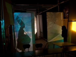 2015 est donc l’année de la reprise des activités de la Cie : accueils en résidences, ateliers de pratique et mise en place des Banquets d’hiver : cette ouverture mensuelle du lieu se fait en lien direct avec la recherche artistique de la Cie par le biais de lectures, de performances et de propositions artistiques décalées. Le lieu devient alors espace de réflexion et de création permanente…
