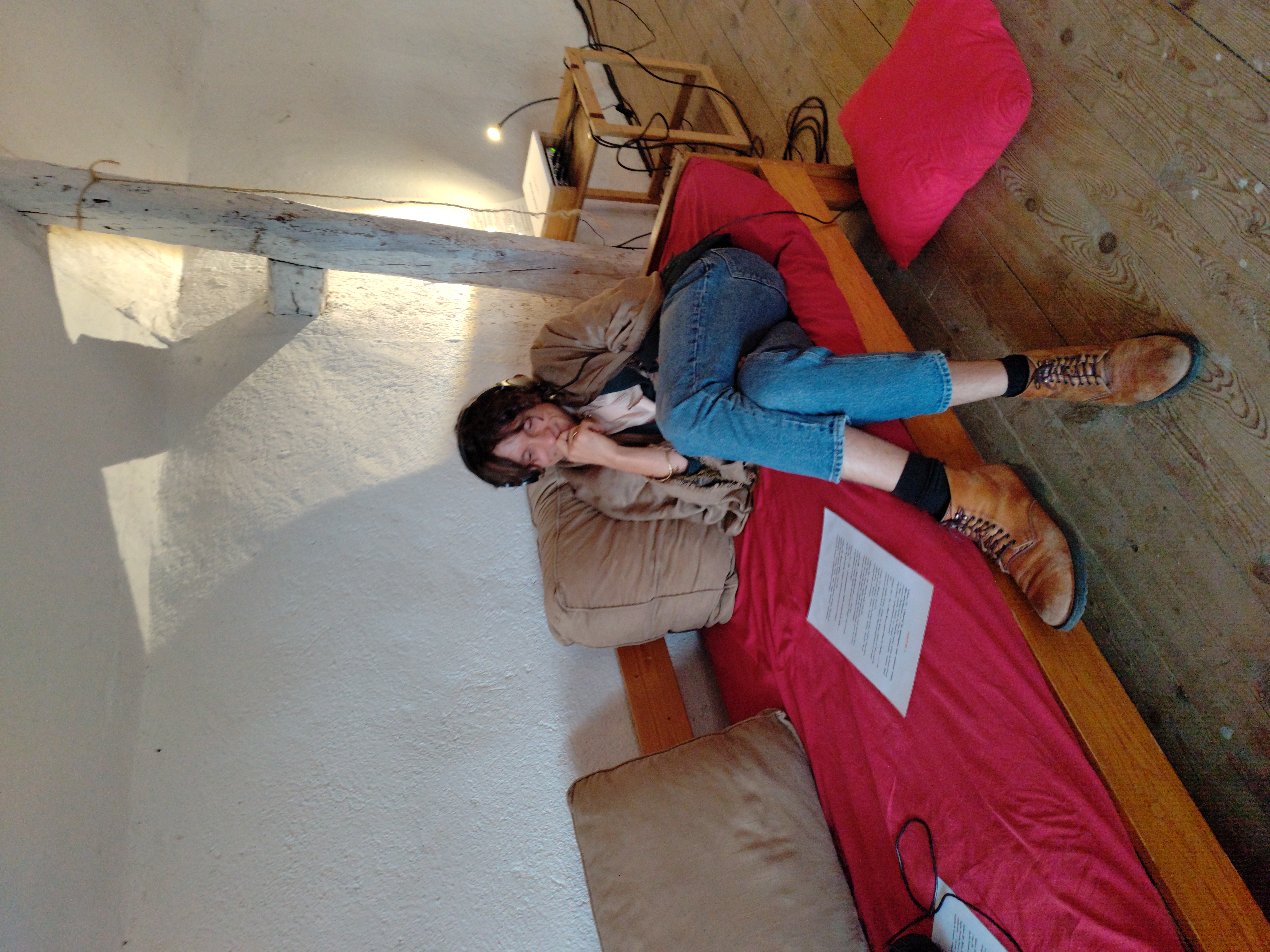 Durant l’après-midi, le public a pu découvrir ou redécouvrir Le monde est rond diffusé au premier étage de la Fabrique du Viala. Cette œuvre sonore, longue comptine-poème-chanson raconte le monde vu par les yeux d’une petite fille : Rose. Rose et son chien Amour, Willie et son lion sauvage constituent les principales figures de ce qu’on pourrait comprendre comme un récit initiatique qui s’ouvre, comme tous les contes, par « Il était une fois… » et se finit, comme tous les contes, par l’union du féminin et du masculin ; mais entre-temps, Gertrude Stein brouille les pistes et bouleverse les codes, fait de Rose l’héroïne intrépide et créative de sa renaissance. Rose et Willie traversent leur monde d’enfant en inventant chacun leurs chants et leurs comptines bien à eux, Rose et Willie diffèrent, s’attirent, s’effrayent et s’espèrent.